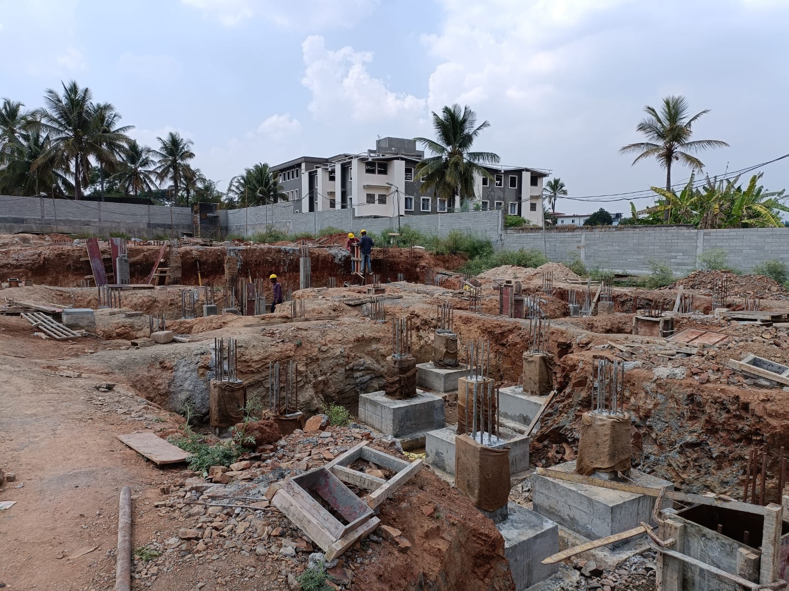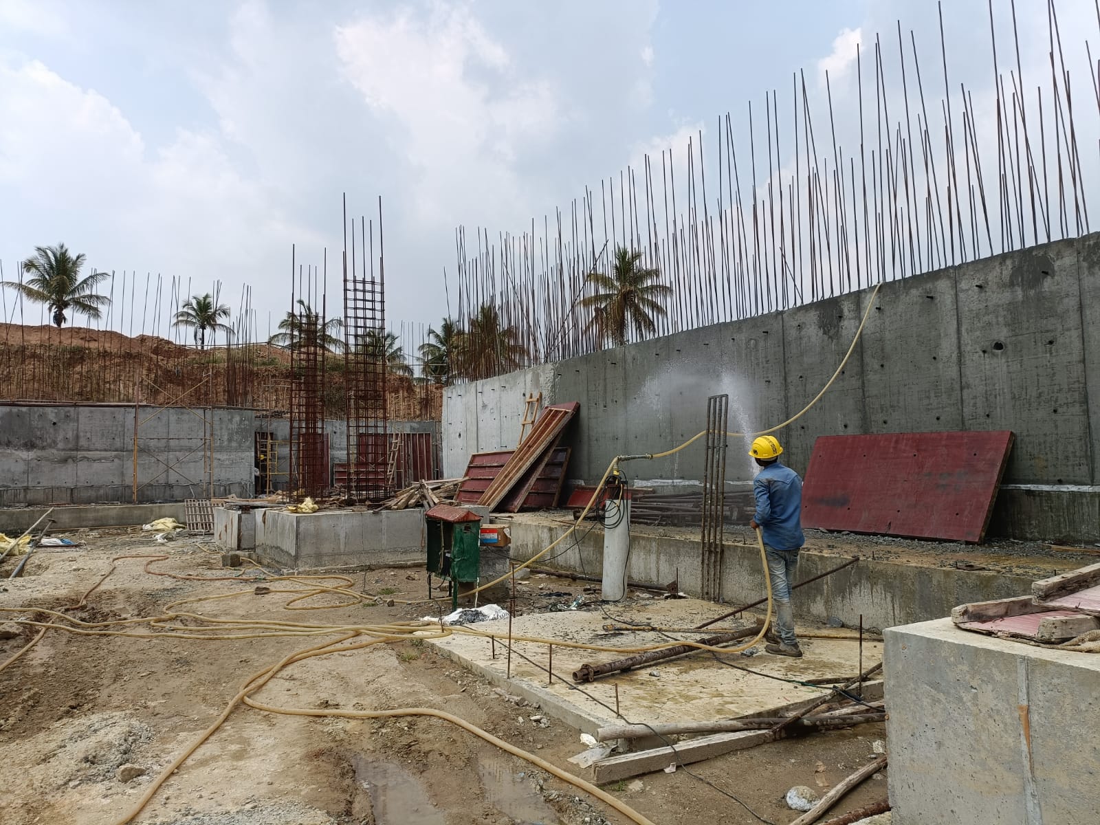 The plinth beam has been encased rapidly to commence the block work, while the construction of the basement retaining walls is also nearing completion.