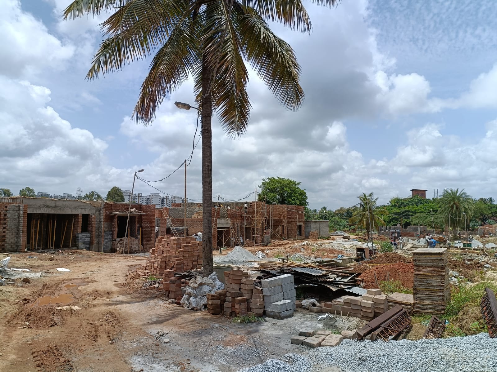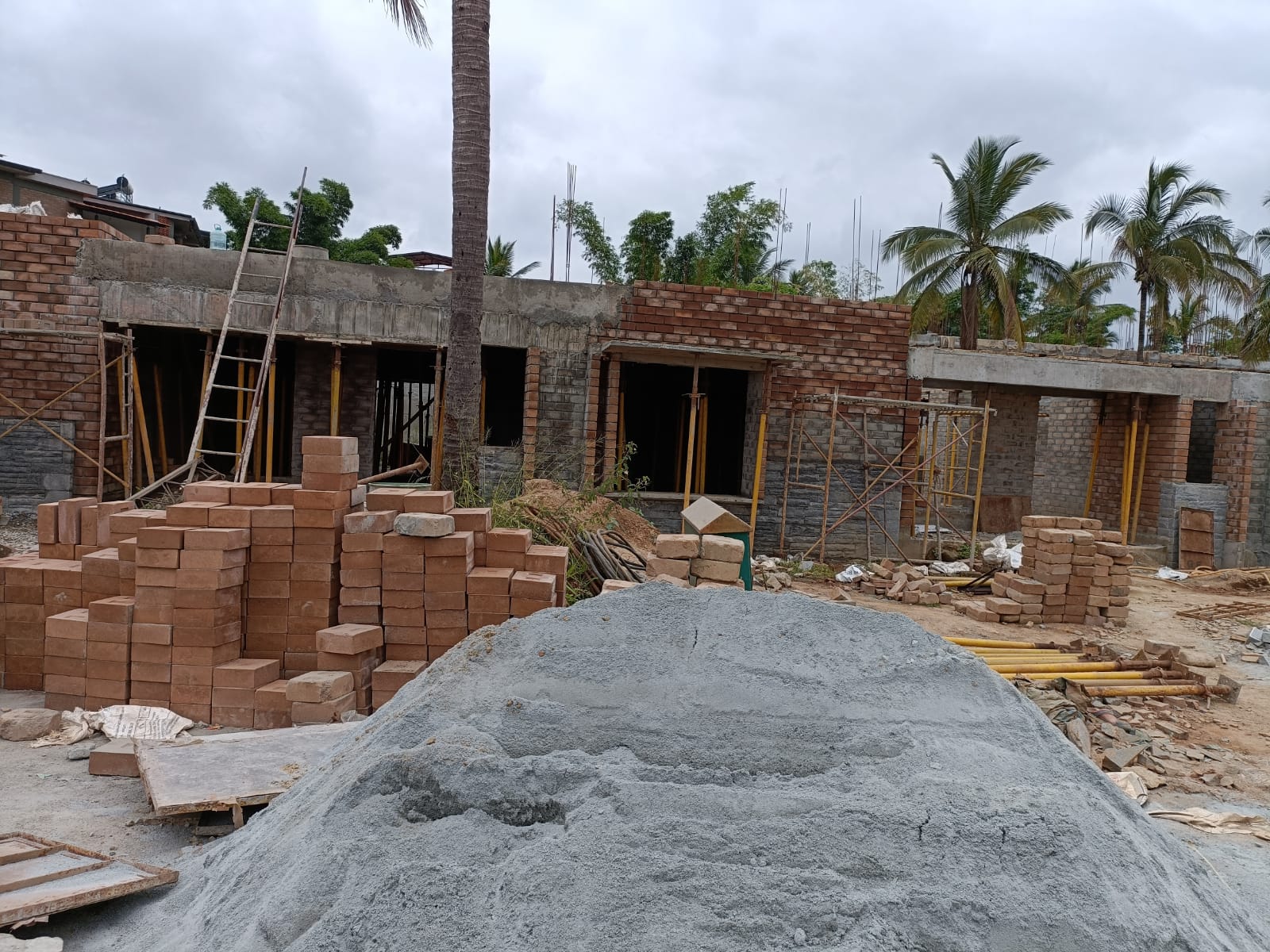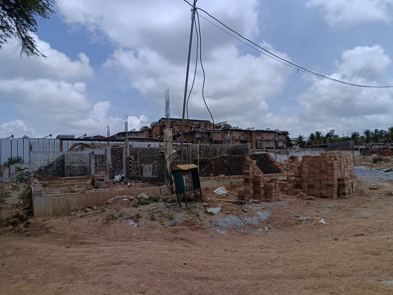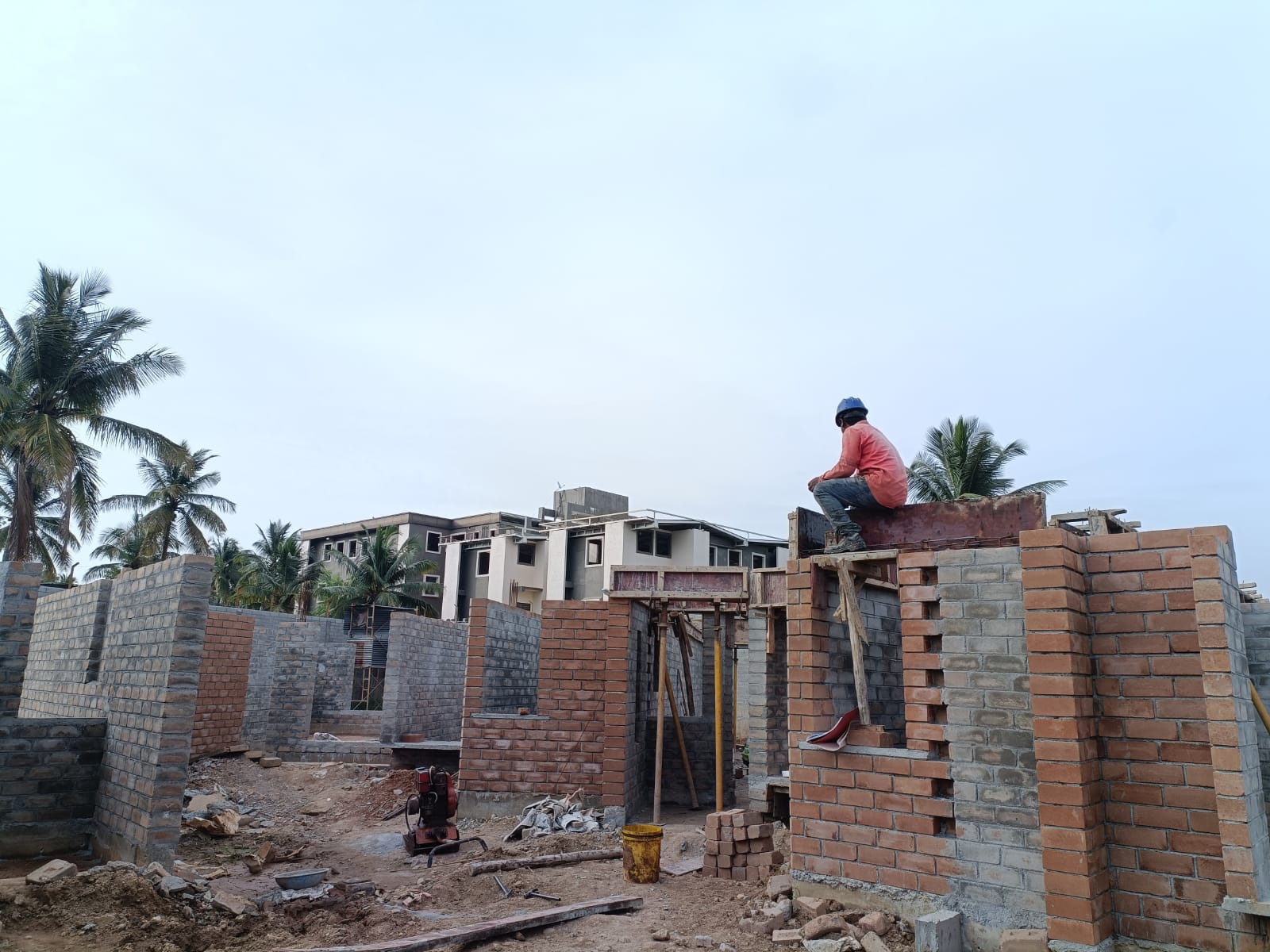 The construction of ground floor block work for the northern side houses is completed, and the casting of slabs is progressing well. Furthermore, the block work for the courtyard houses is also progressing smoothly.