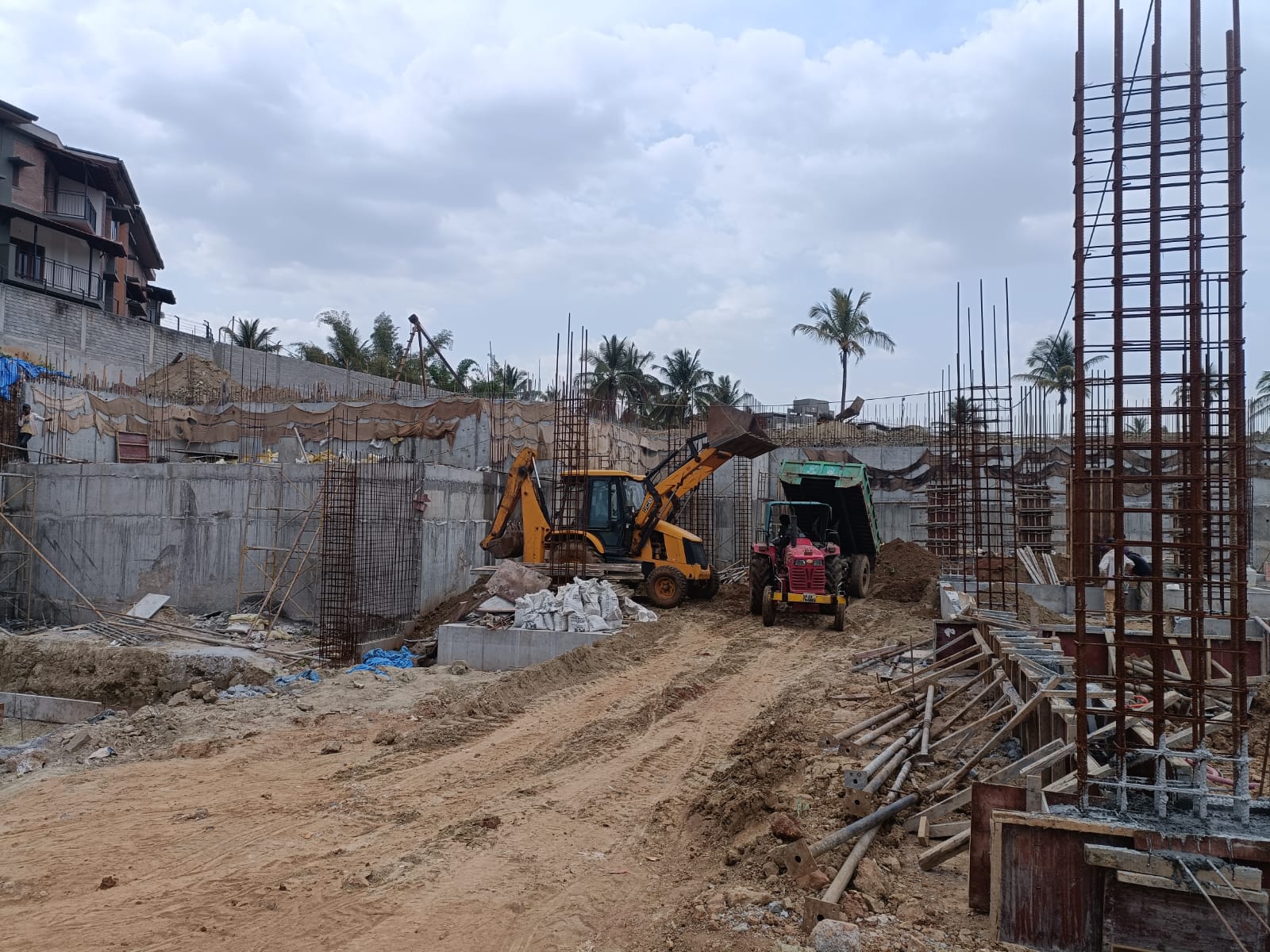 The basement is currently undergoing backfilling, footing and column casting, and the remaining construction work on the retaining wall.