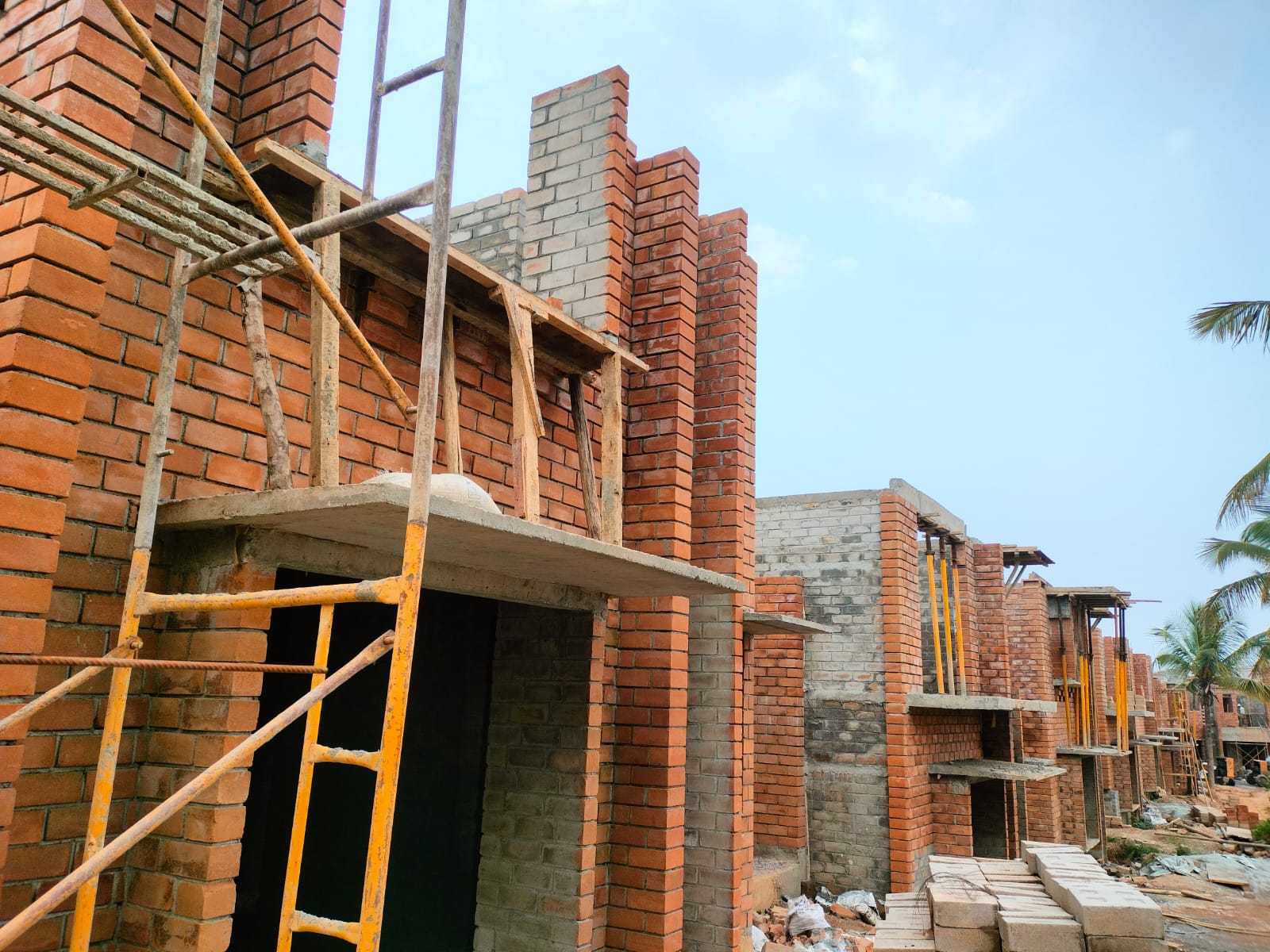 The northern side houses are taking on their final form as we completed the first floor brickwork and commence the construction of the first-floor slab.