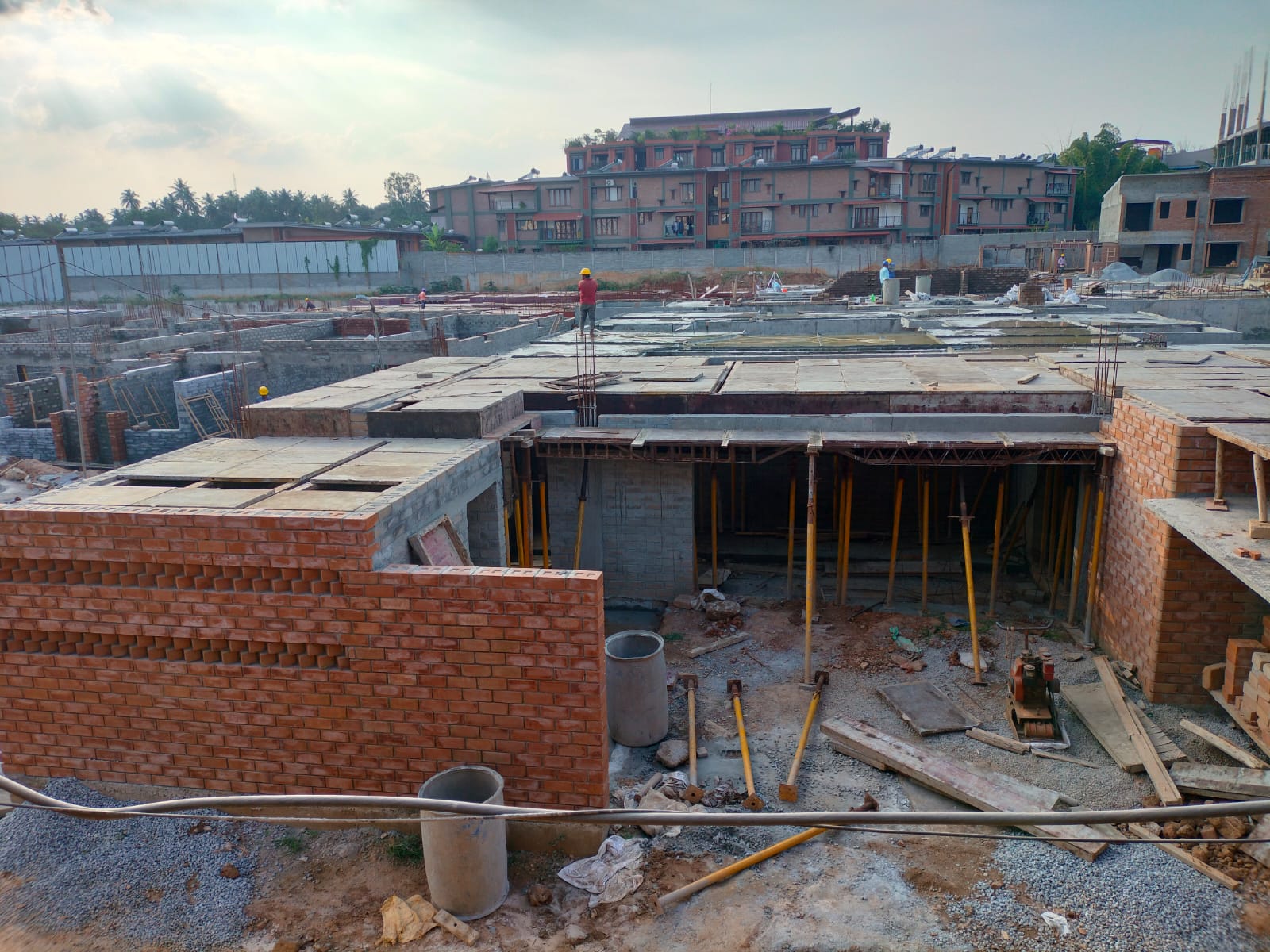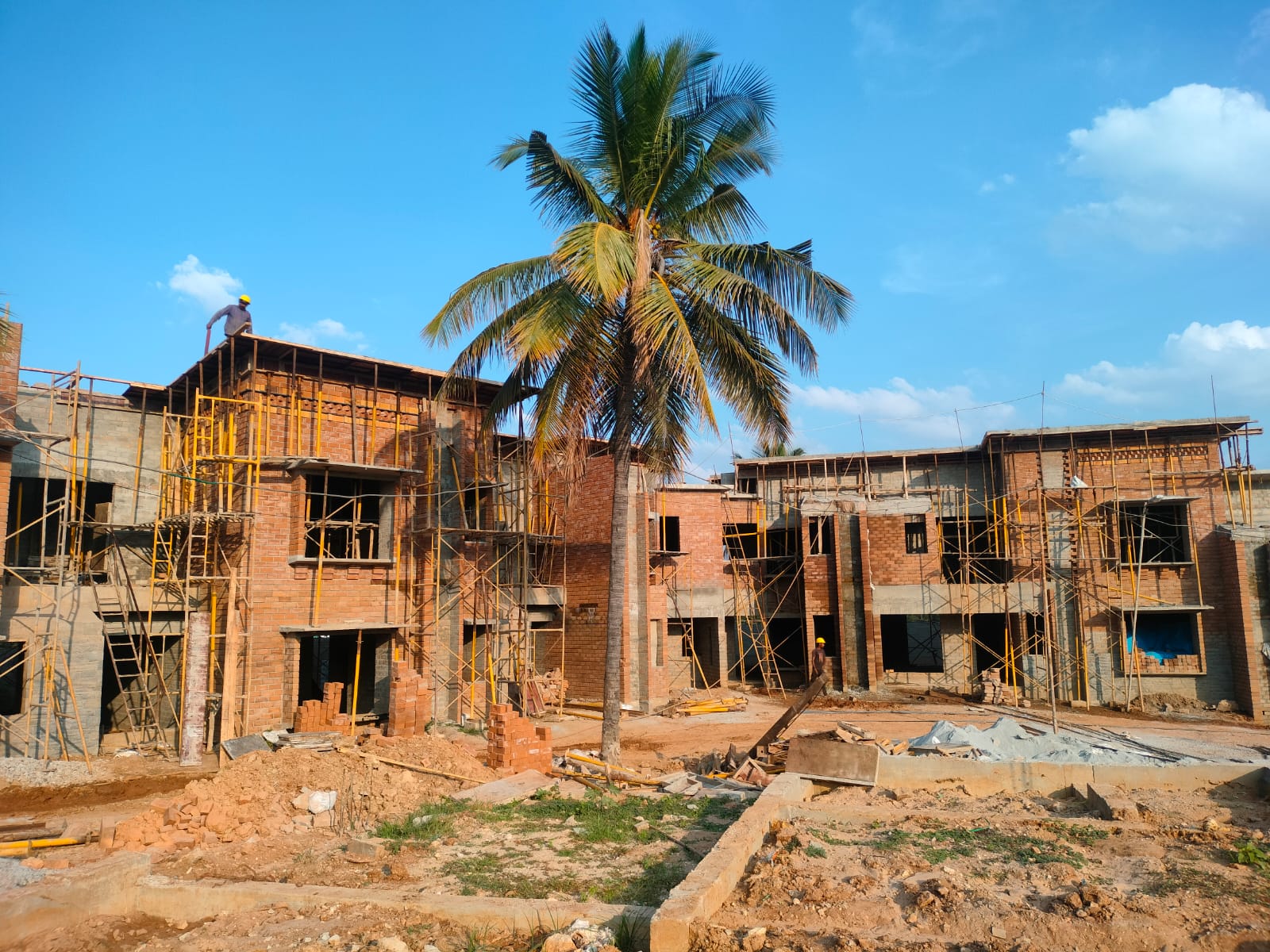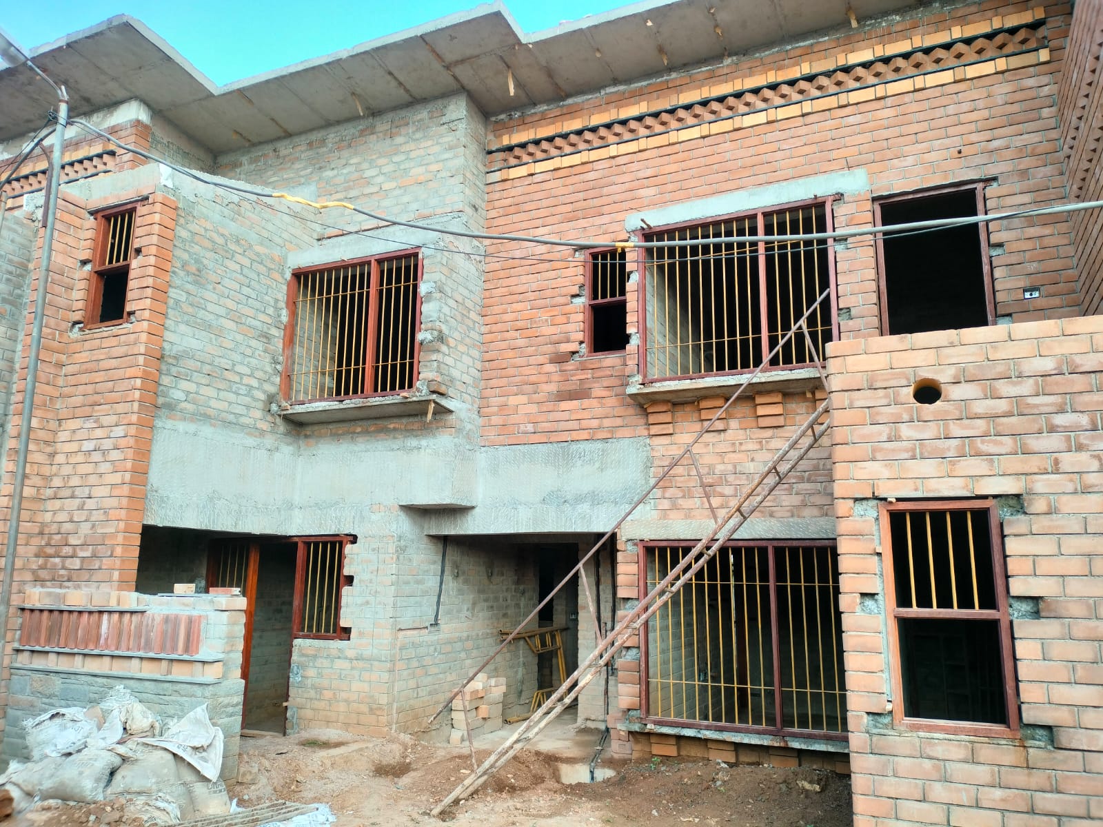 The installation of door and window frames for the initial house is completed. Meanwhile, we are progressing with the first-floor brickwork and the first-floor slab.