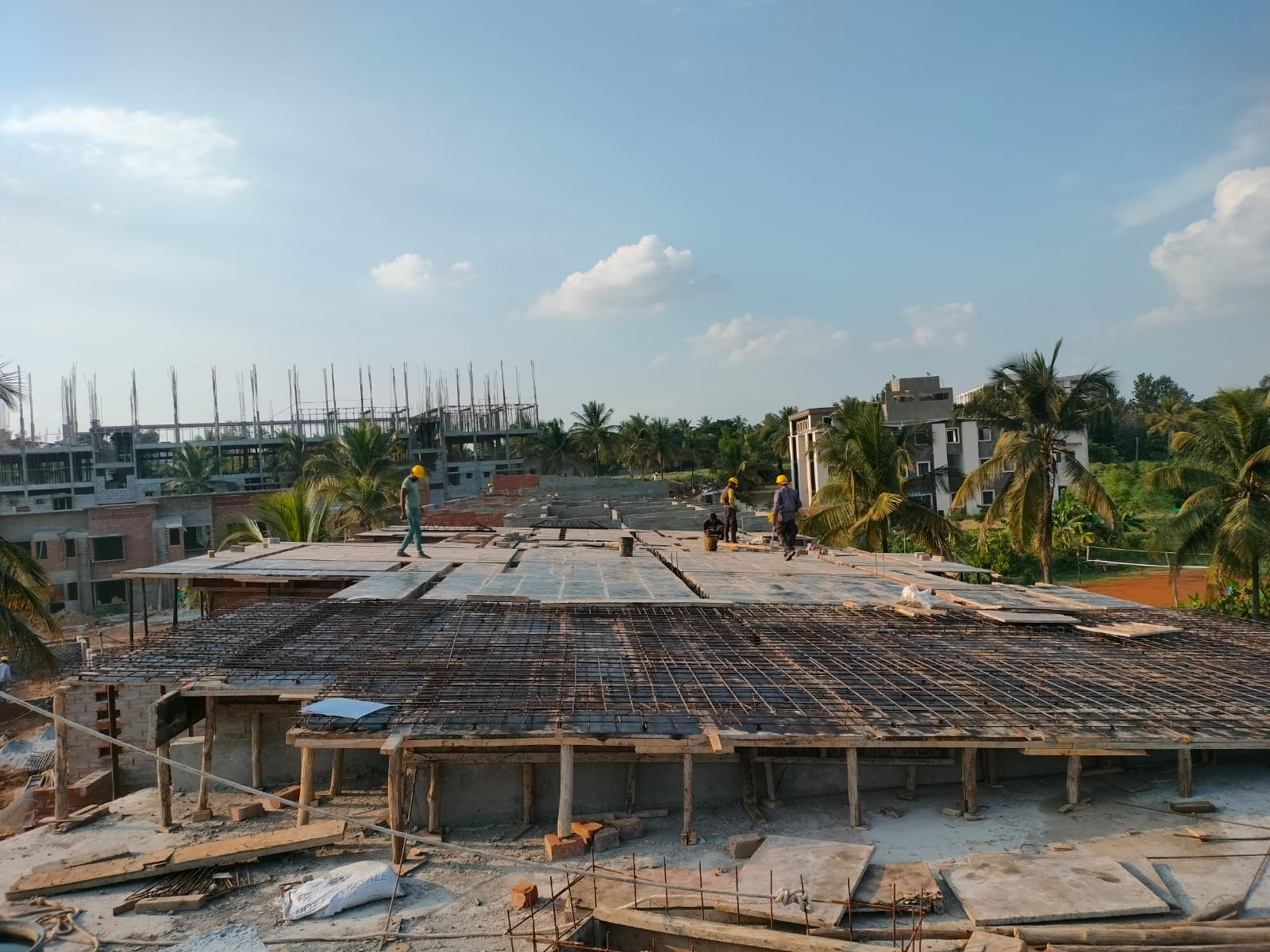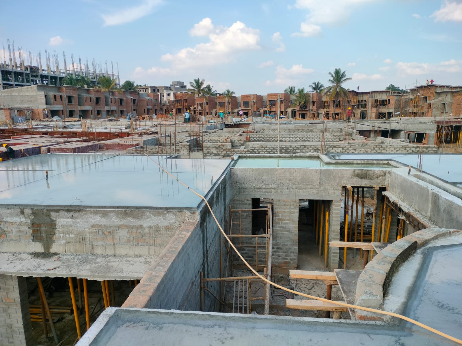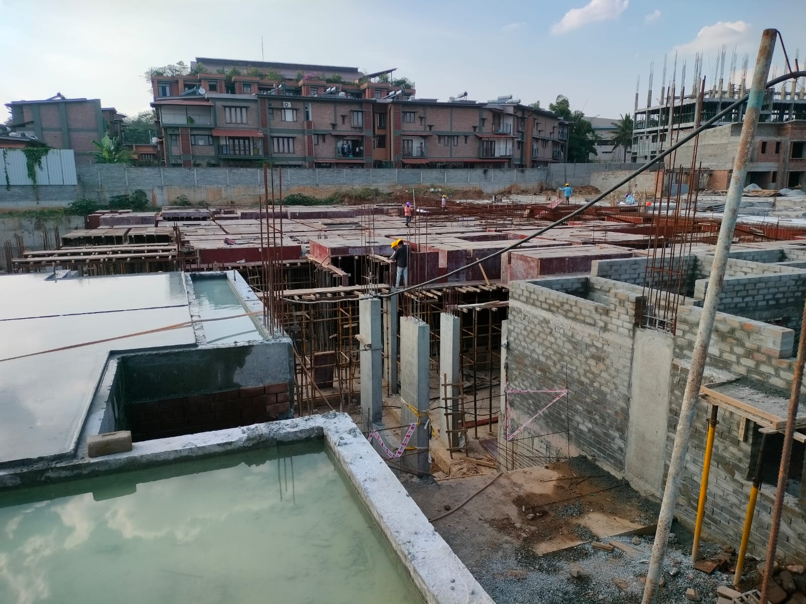 The installation of door and window frames for the initial house is completed. Meanwhile, we are progressing with the first-floor brickwork and the first-floor slab.