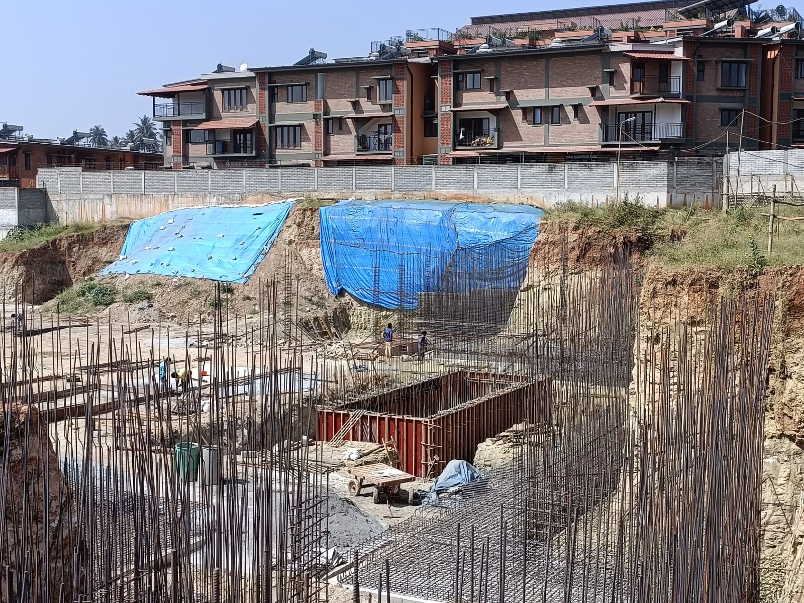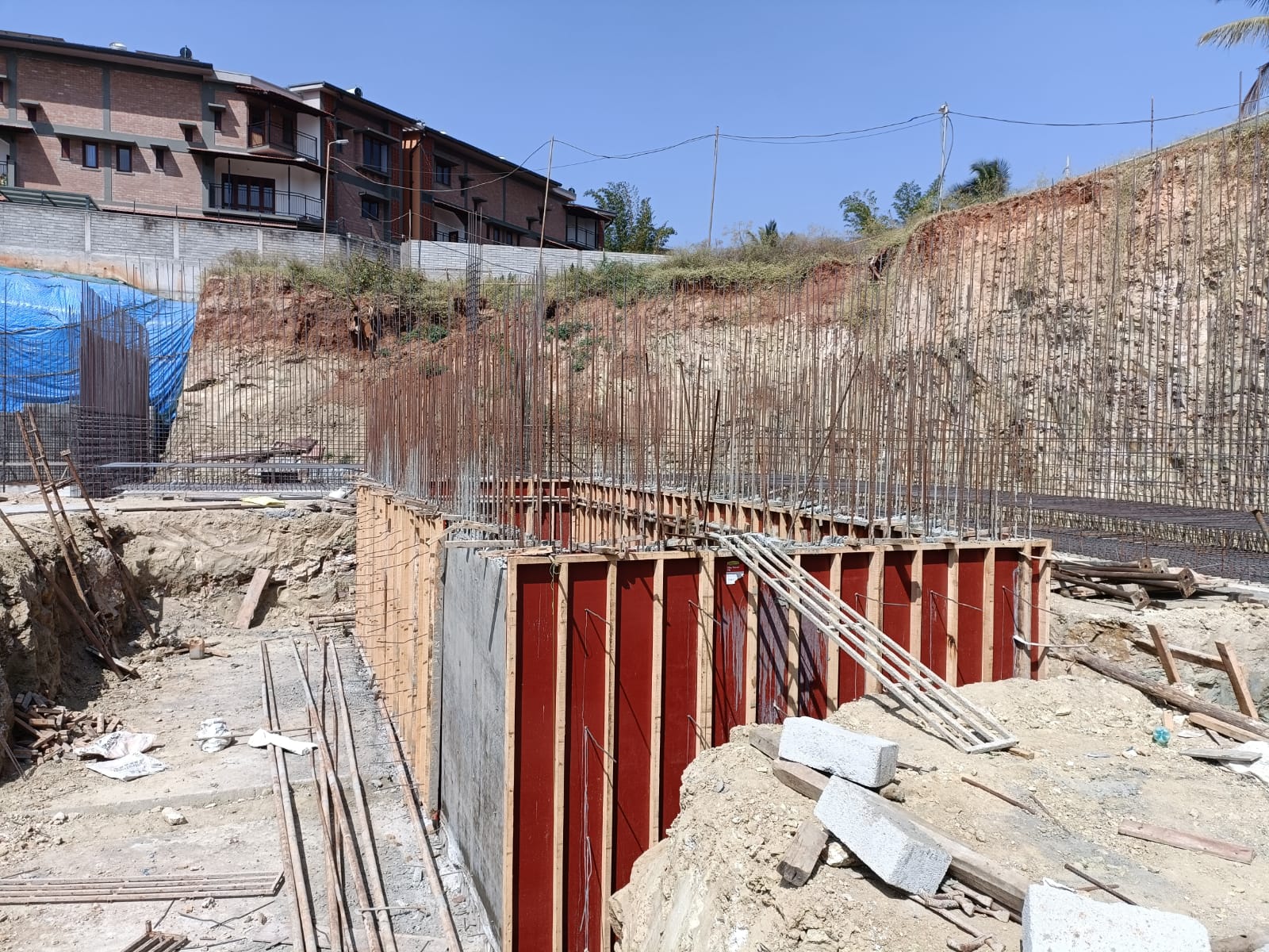 The construction of the foundation supports, specifically the piling and footing, is currently in progress and moving forward efficiently. Additionally, the team has begun the process of casting the walls for the water tanks.