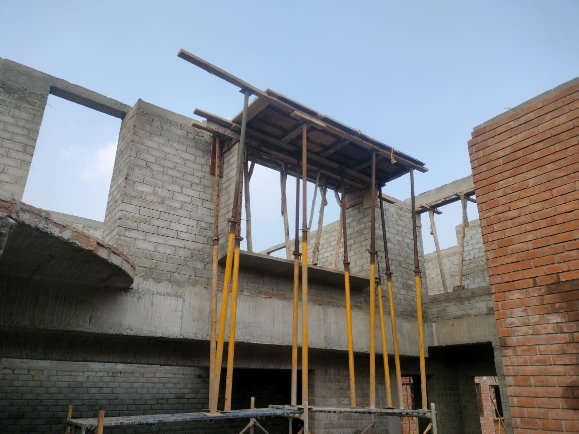 The courtyard houses are also progressing rapidly, including the casting of the first-floor slab, first-floor brickwork, and the casting of the ground floor slab.
