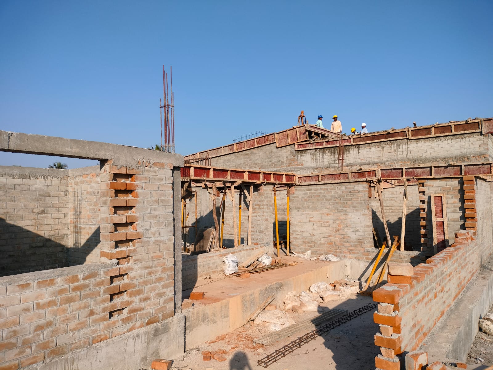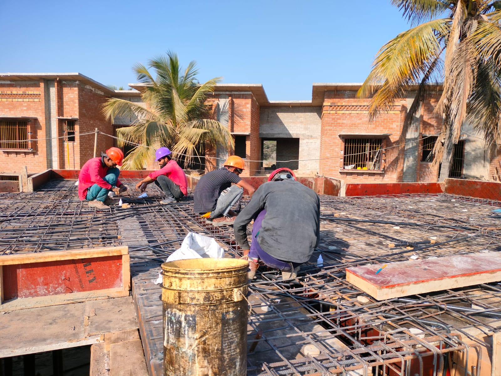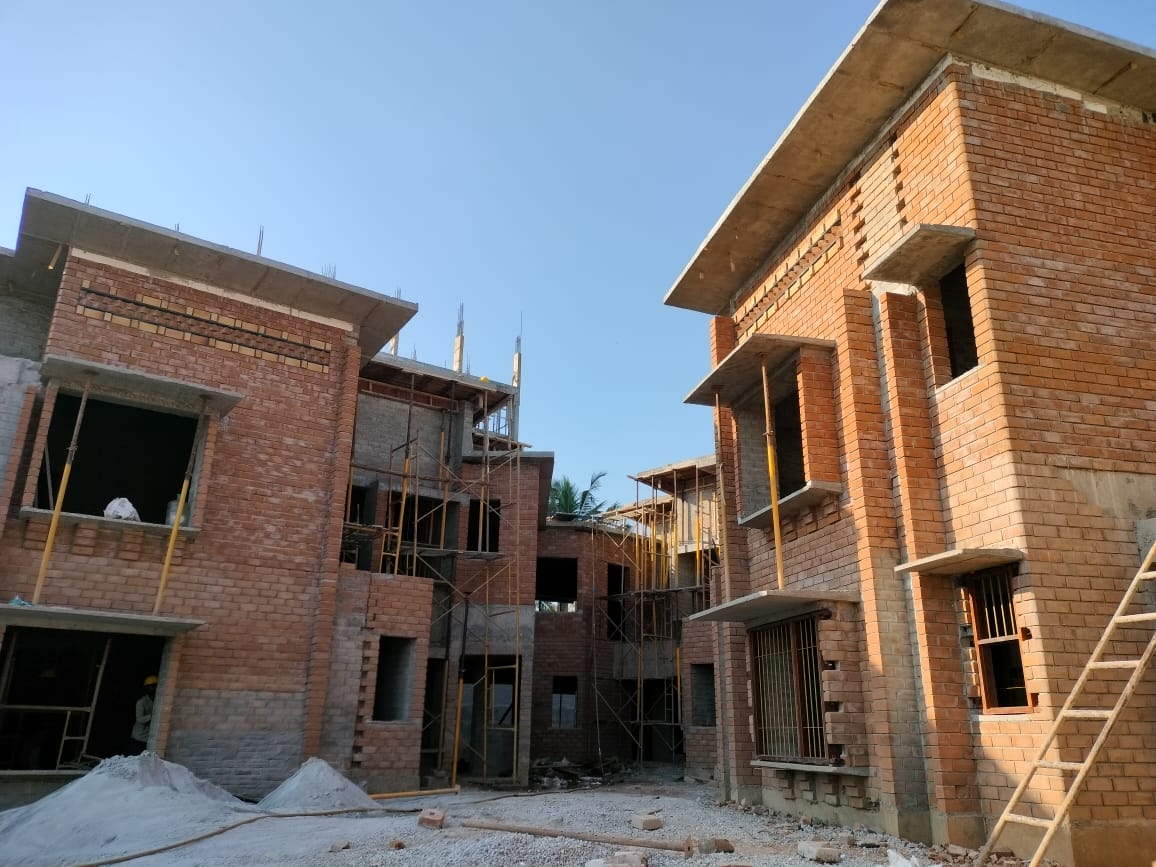 Progress is being made on the courtyard houses, including the casting of the first-floor slab, the brickwork for the first floor, and the casting of the ground floor slab.