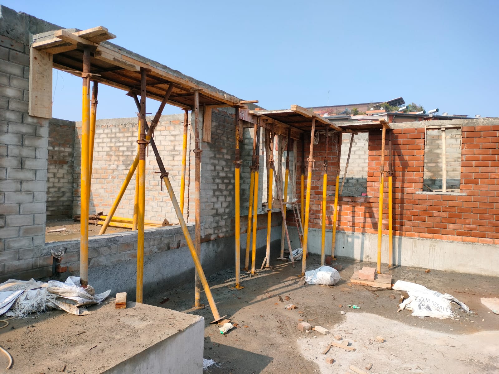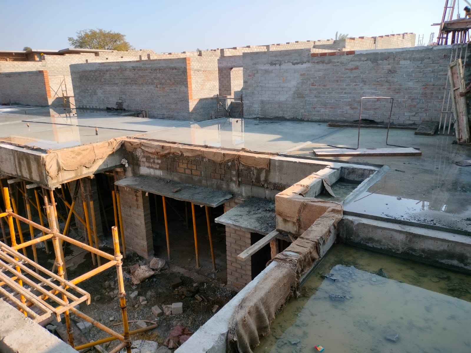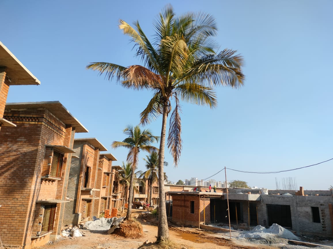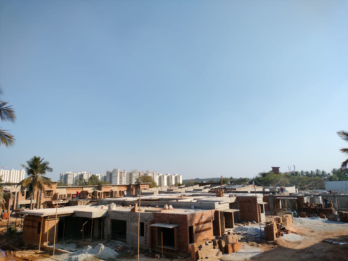 Progress is underway on the houses located on the northern side, involving internal plastering, first-floor slab installation, electrical and plumbing work, as well as frame fixing.