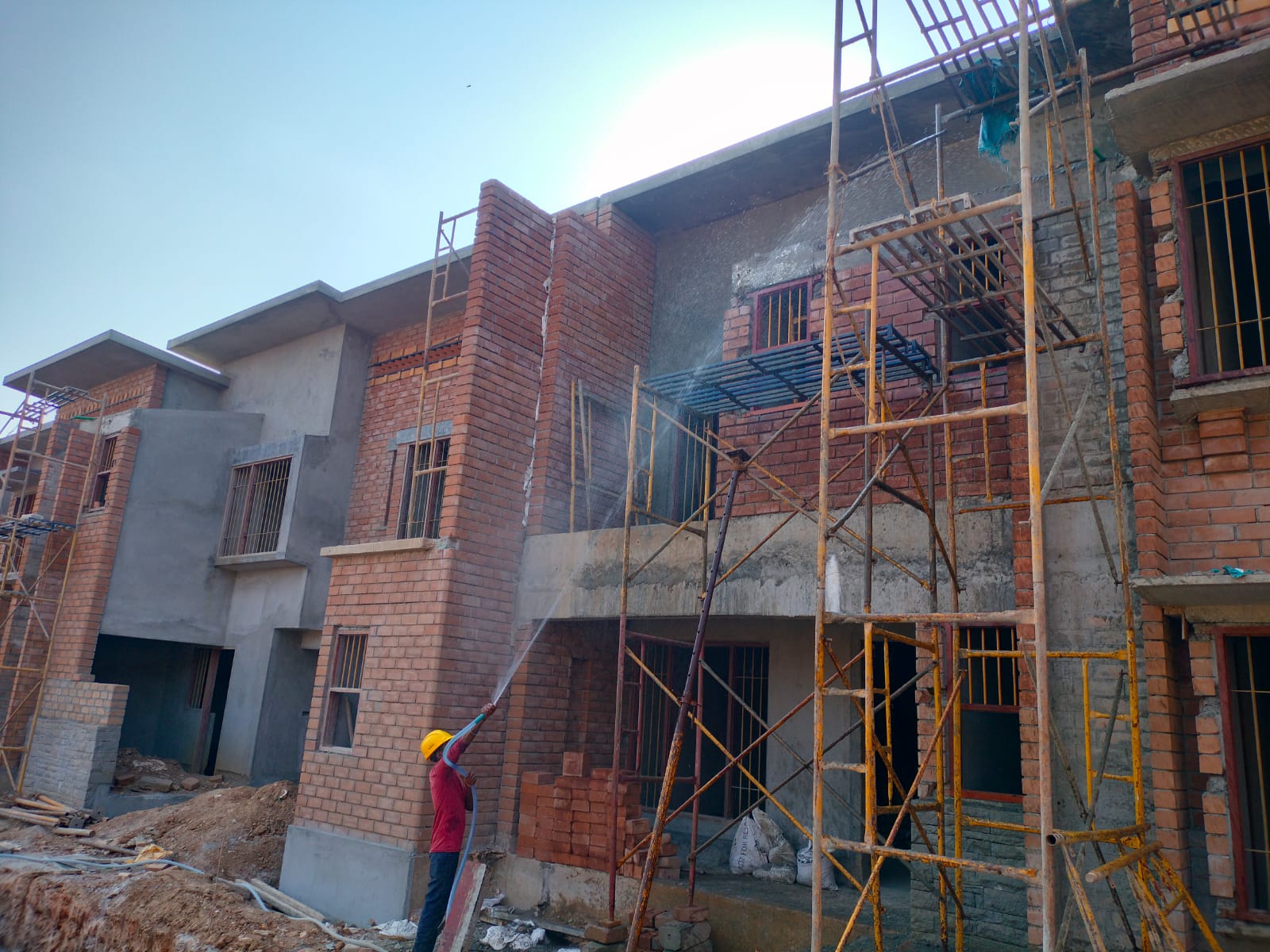 Progress is being made on the courtyard houses, reaching significant milestones like the completion of the first-floor slab casting, brickwork on the first floor, and the casting of the ground floor slab.