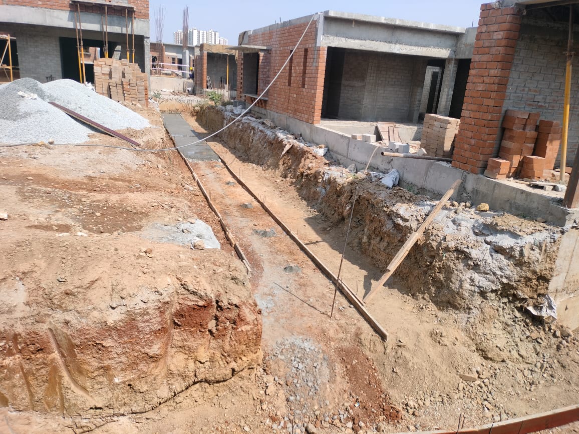 After the completion of the basement slabs, curing is currently underway. The brickwork for the ground floor and the casting of the ground floor slab for the first set of podium houses are in progress.