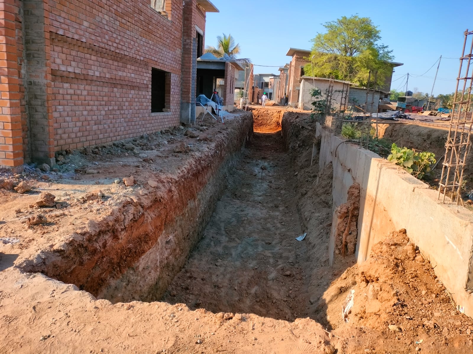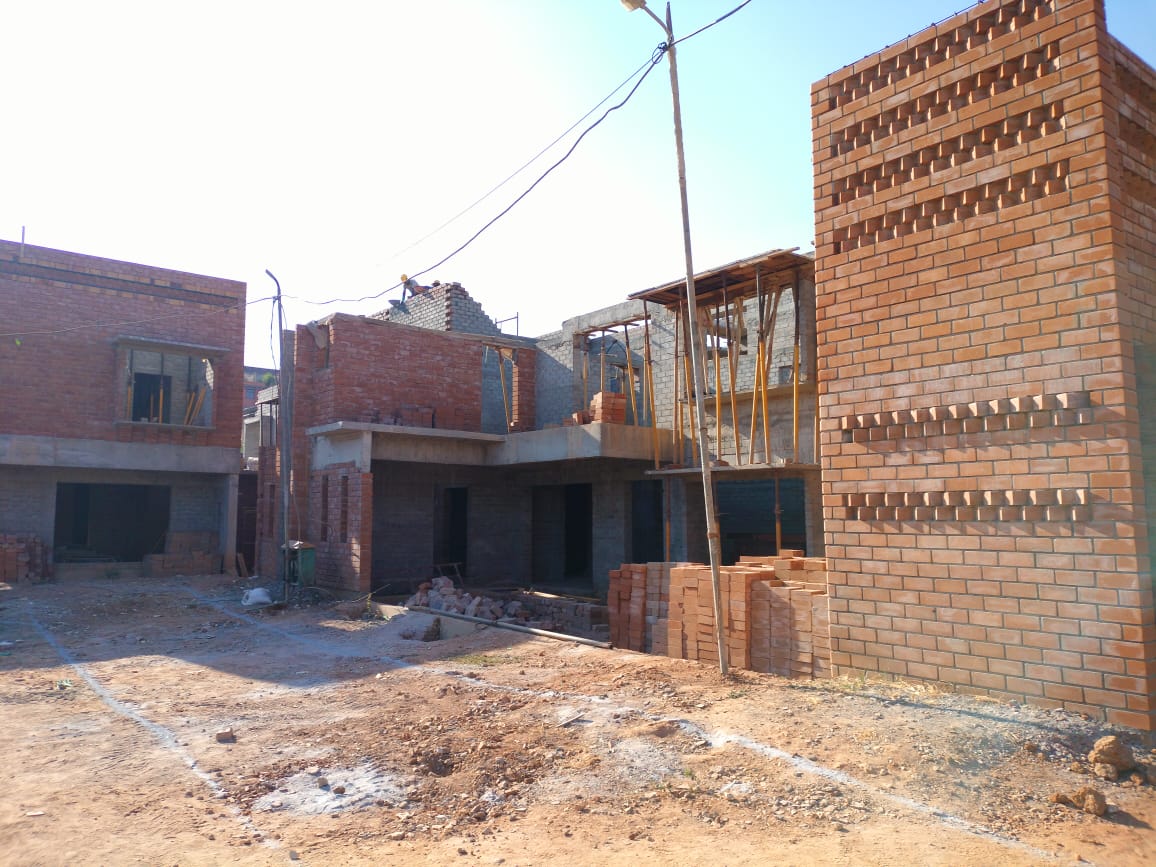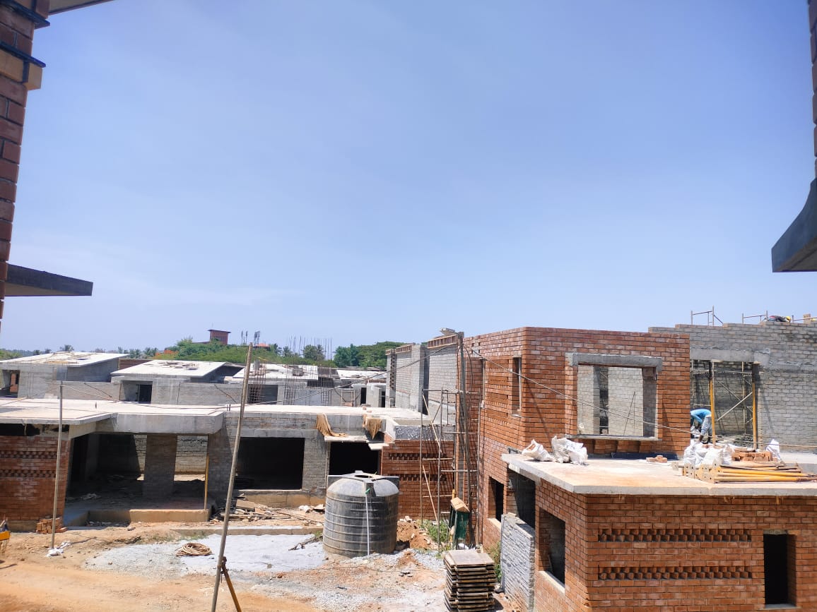 The internal plastering works for the courtyard houses have also commenced and are progressing well, with the completion of the first-floor slab casting, first-floor brickwork, and the casting of the ground floor slab.