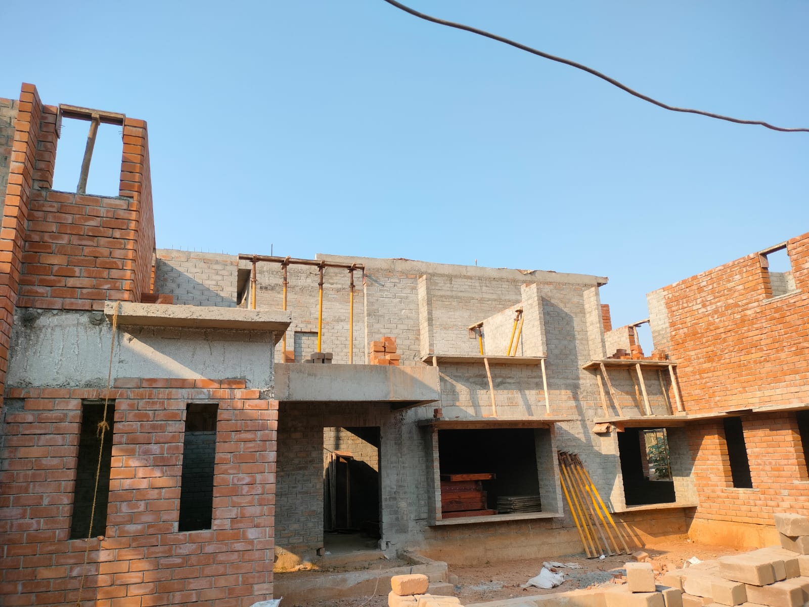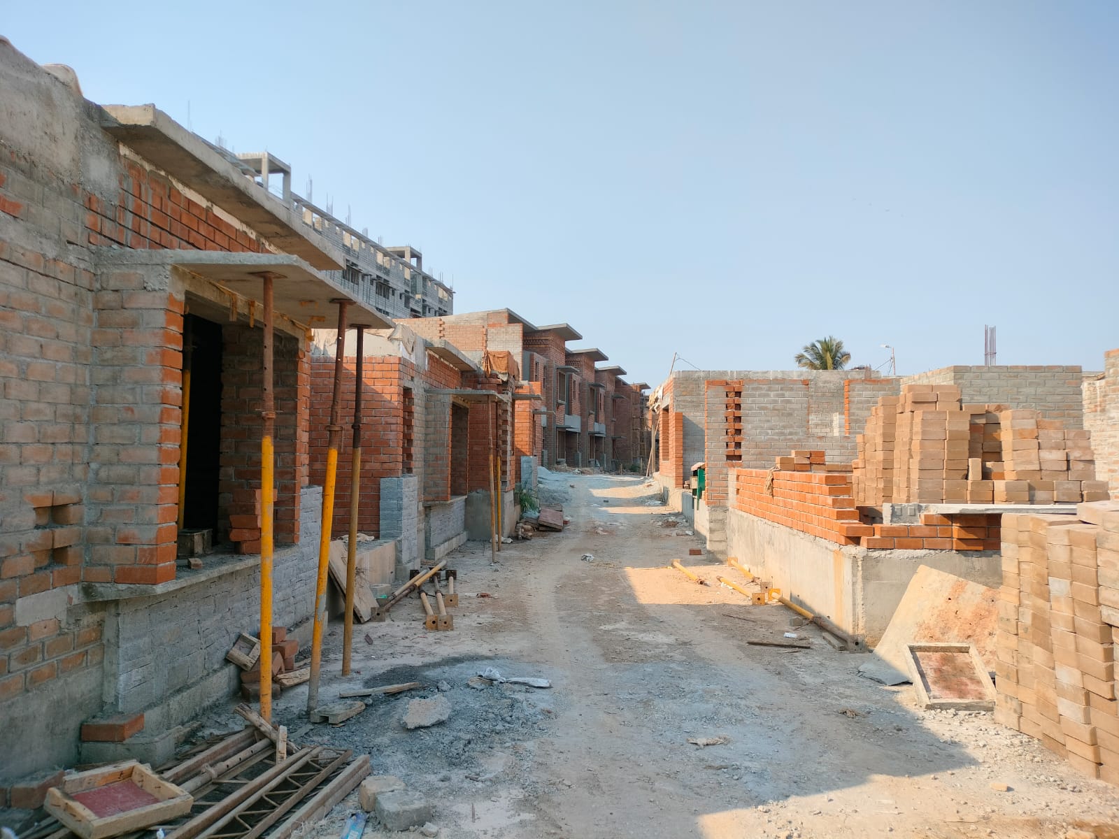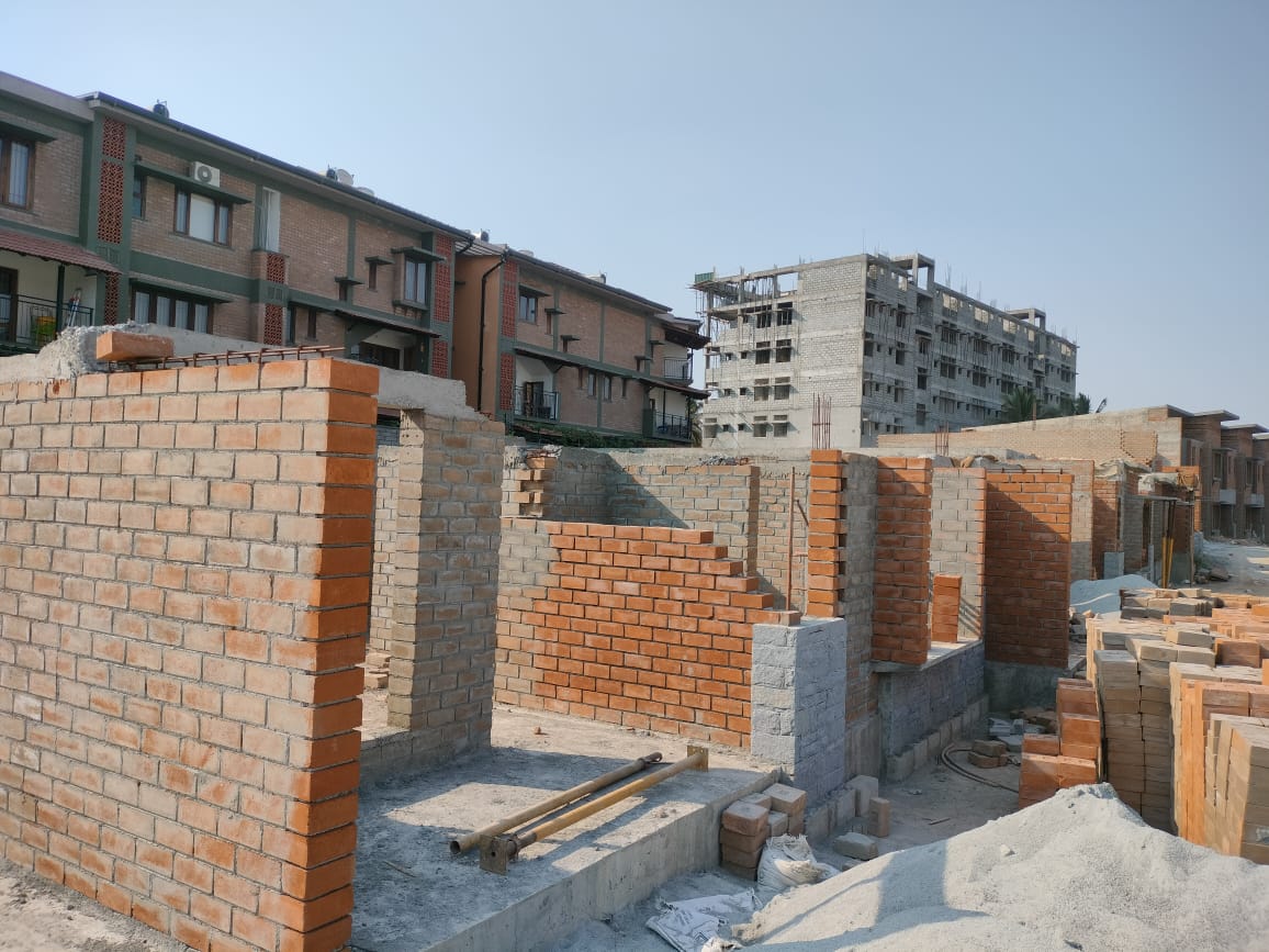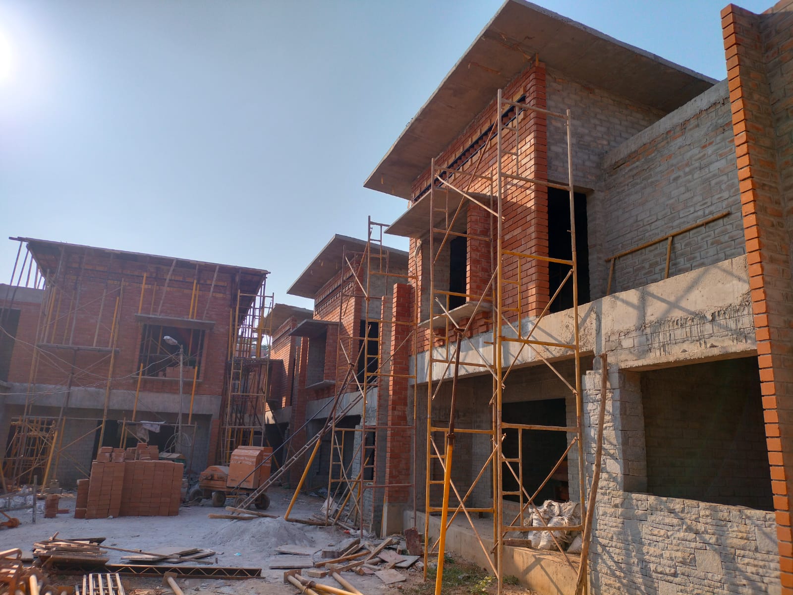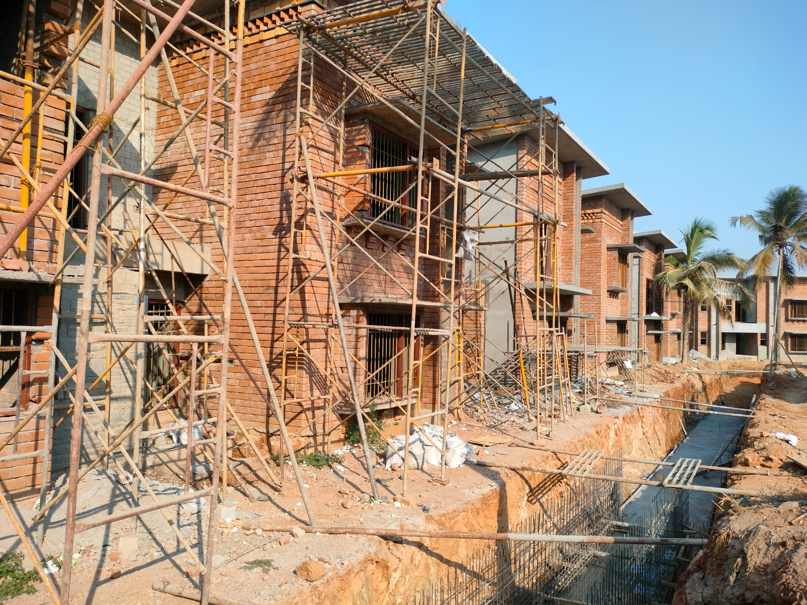 Progress is being made on the courtyard houses, including the casting of the first-floor slab, the brickwork for the first floor, and the casting of the ground floor slab.